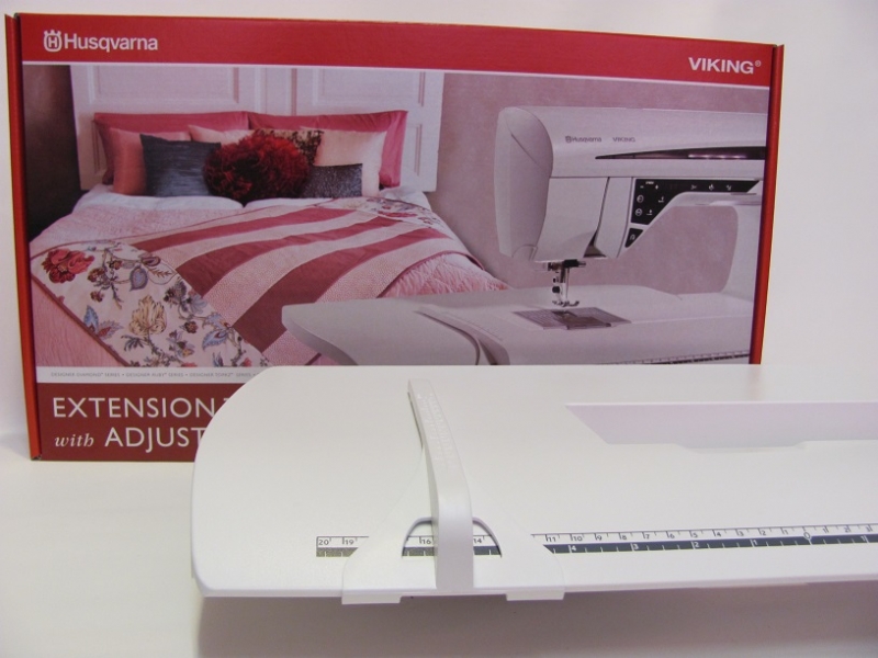Dieser Anschiebetisch mit Führung aus robustem Kunststoff inkl. Maßeinteilung (Inch + cm) vergrößert Ihre Auflage-und Arbeitsfläche enorm und sorgt somit für mehr Platz beim Nähen und/oder Quilten. Unter anderem lassen sich damit auch sehr große Quiltprojekte bequem nähen.