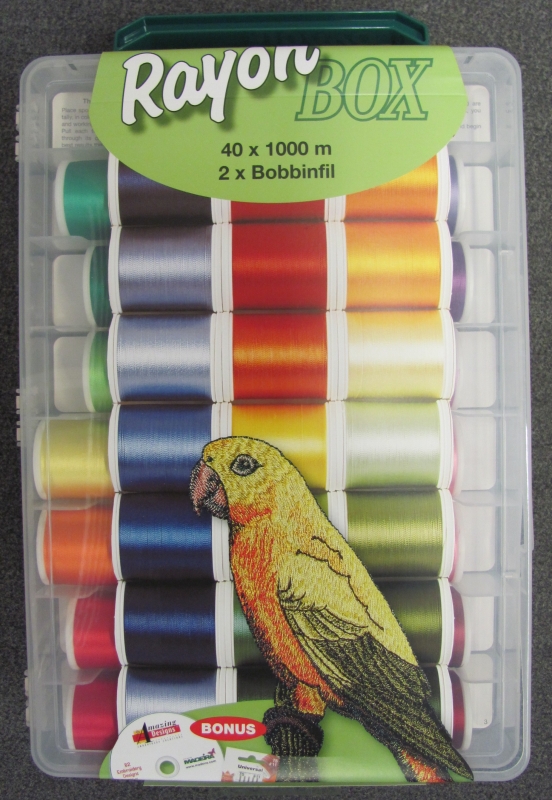 40 Spulen Rayon No. 40 - 1000 m , 2 Spulen Bobbinfil ( Unterfaden ) - 1000 m